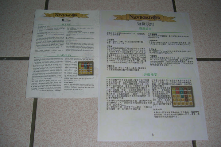 【遊戲名稱】:大航海家(Navegador) 【遊戲年份】:2010 【遊戲人數】:3-5人 【遊戲時間】:90分,實際上開約需要120分 【遊戲類型】:策略型,區域移動 這個遊戲,Tommy昨天才從到貨的唯一兩箱中取得一箱,又是一款期待已久的遊戲!