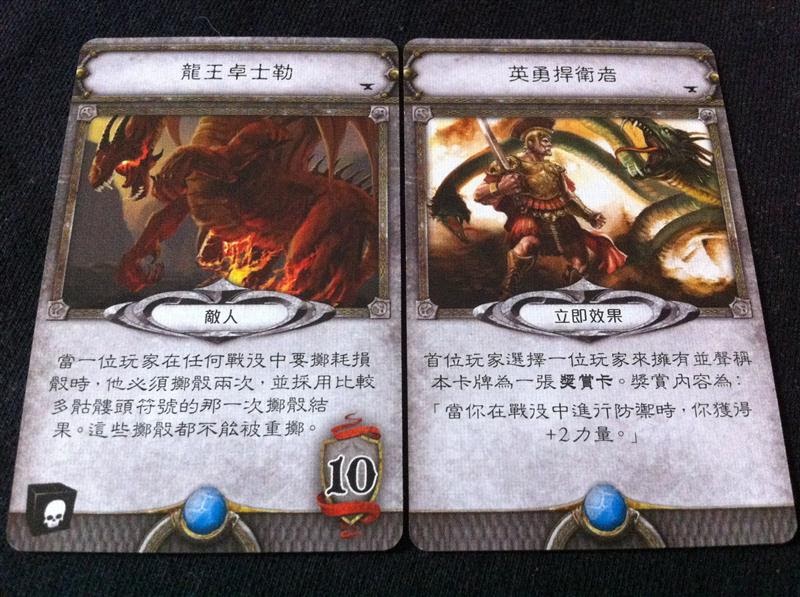 【圖解】龍王奎遜勒斯和龍王的決心 - 這4張事件卡將會取代時期I的事件卡來使用,而玩家在合作變體都是使用同一張祖國領主的血量,一直到玩家擊敗了目標才算勝利。這對新手教學的龍王再現劇本作了一次昇華讓老練的玩家可作另一次的挑戰