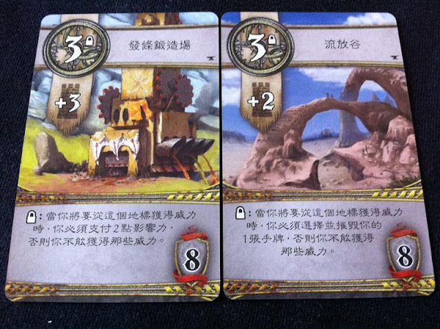 擴充特殊劇情使用的8張「地標卡」(基本版為都市卡)和新增「威力值」資源概念