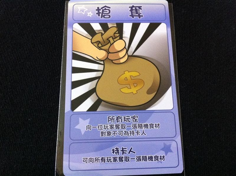 玩家「得標」時如果有事件卡就必須先發動事件卡才可獲得食材