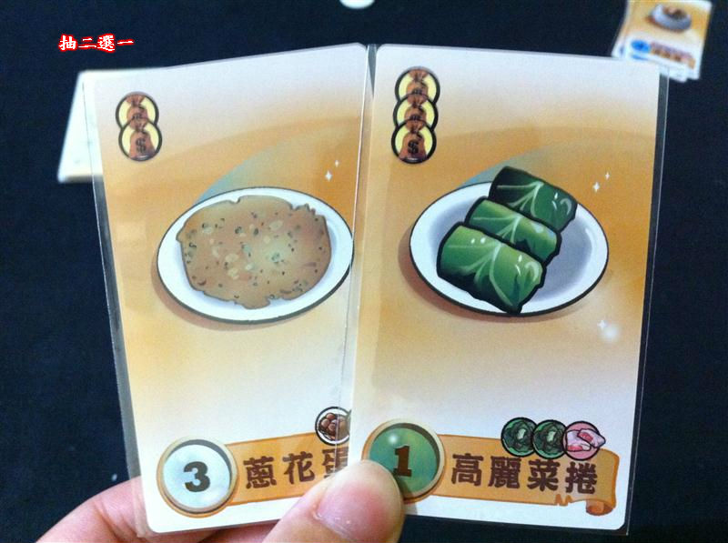 在看過「食譜卡」後玩家可以任選「二個食材」給自己
