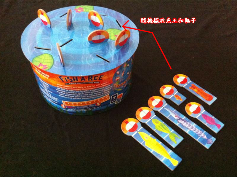 O然後玩家在把「魚王卡」洗均放在遊戲區,就可以開始進行遊戲了