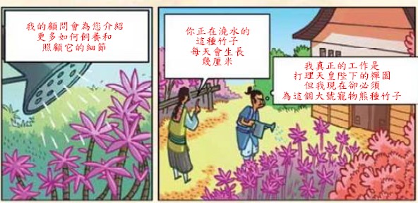 天皇所指派的任務都與經營這熊貓竹園脫不了關係的餵養熊貓、開墾土地、種植竹子