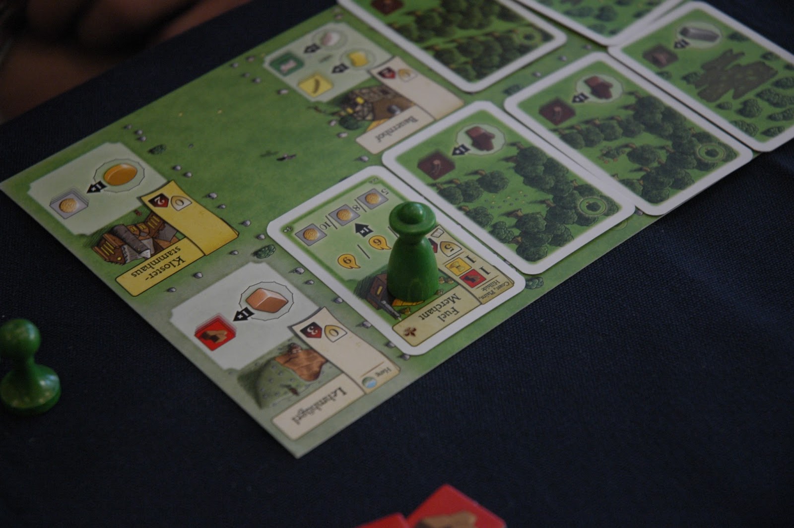 四種顏色分別代表四位玩家,最左邊的為修道院長另外兩位就是修道僧~