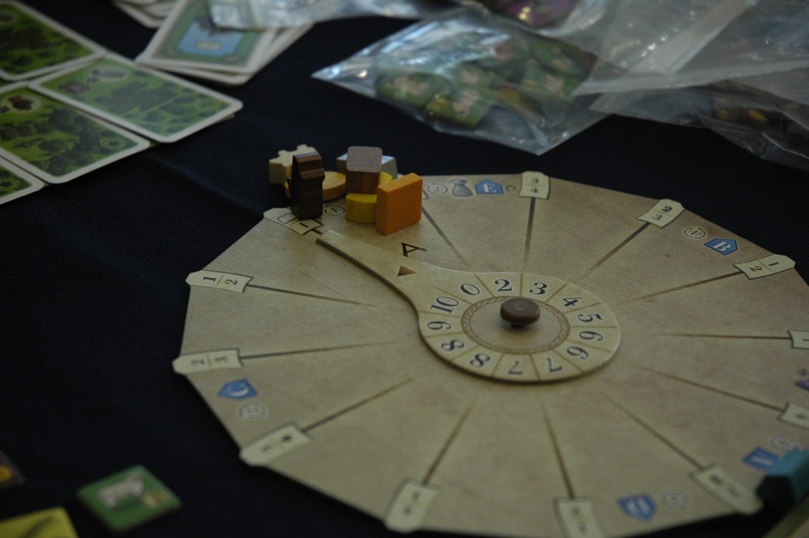 玩家每經過一輪就會逆時針轉動指針一格,指針上的數字表示目前物料的數量,可以省去補一堆料的動作,也可以知道遊戲現在進行到的階段。