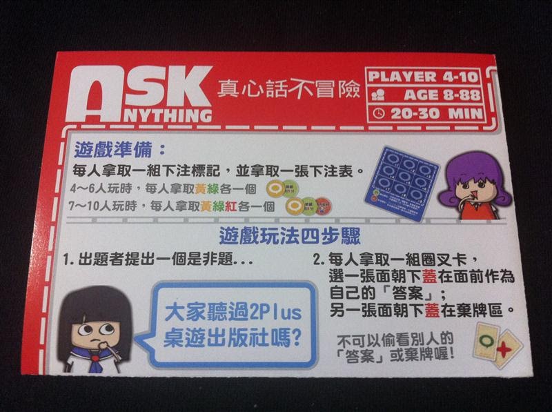 【圖解】遊戲訴求是主打8~88歲都可以參與,希望可以樓上揪樓下、阿公揪阿嬤全家一起同樂。ASK ANYTHING就是有問必答的意思,所以玩家不用到廟裡求神拜佛問籤直接行動來玩《真心話不冒險》就能解籤辣!
