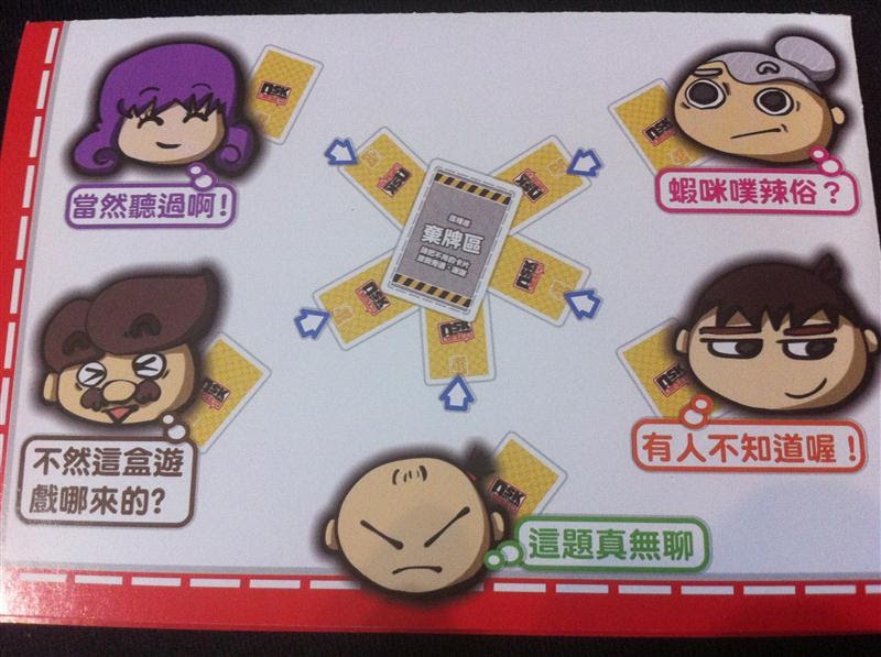 ④出題者最後把玩家面前的「答案卡」洗牌後攤開就能結曉謎底了,猜中的人可獲得1分!