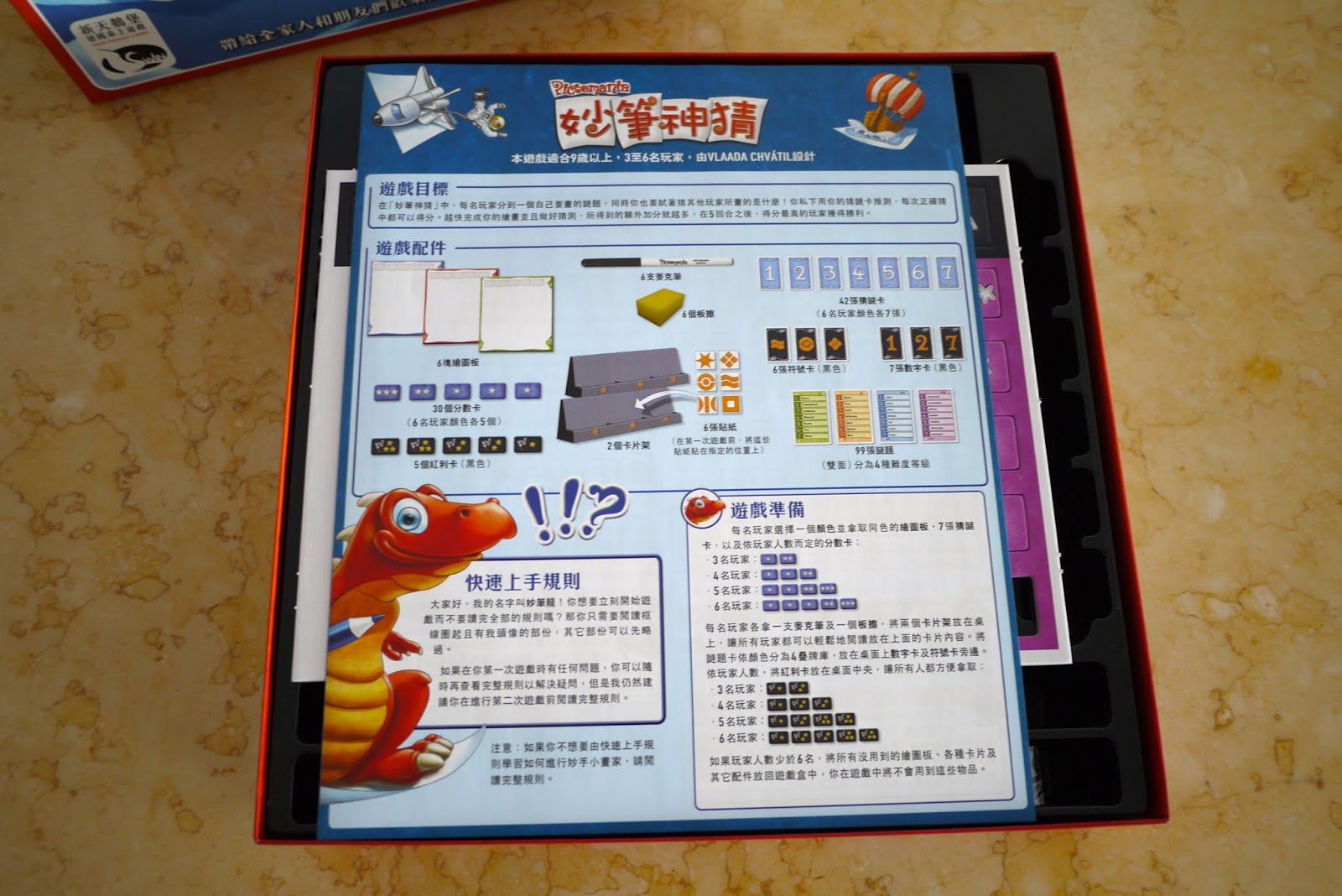 遊戲規則裡,也貼心的說明了一些繪畫的規範,像是不可以寫字、字母(注音),不可以提示在卡片上答案的位置,防止玩家破壞了遊戲的樂趣;一些合法的建議也是給玩家一點遊玩的建議(好像是使用手冊),玩家可以畫一些符號、使用箭頭來強調、可以中途修改等等,讓害羞的玩家也可以很快進入狀況。