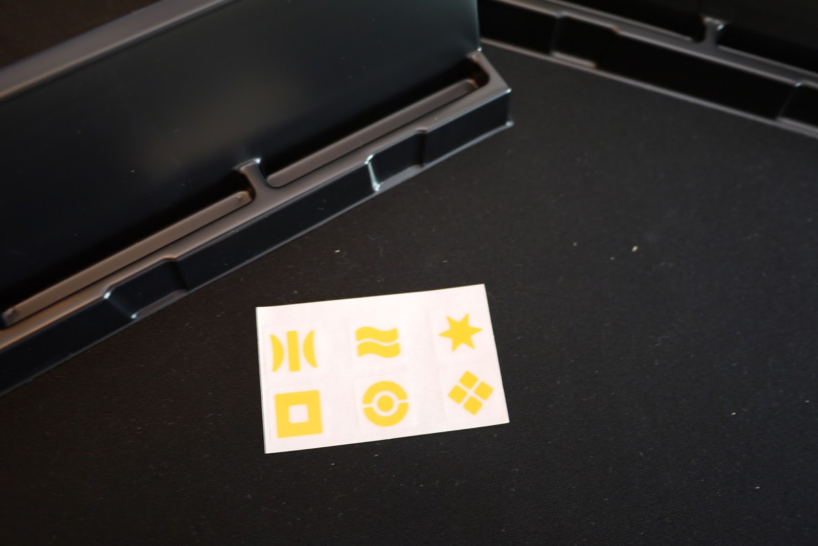 | 牌架和貼紙,第一次玩之前把貼紙貼上凹槽。 |