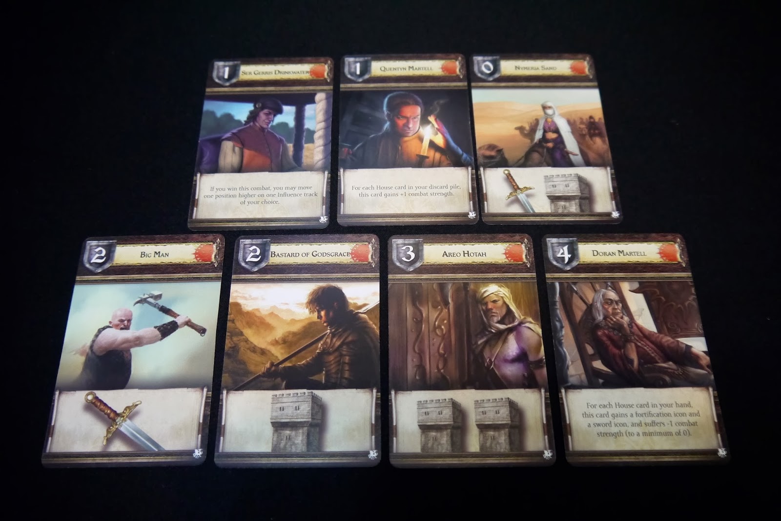 當然,對於讀完「與龍共舞」,小說第五部的玩家來說,絕對是躍躍欲試,可惜中文版遲遲不見消息,對於遊玩「與龍共舞」(A Dance with Dragons)來說,無疑是種被雷到!若是想體驗閱讀小說樂趣的玩家,要有心理準備(當然在國外,冰與火之歌的粉絲們,早就引頸期盼第六部的到來)。相較於「冰與火之歌」的一版卡片,我最喜歡第二擴充:「劍雨風暴」的將領卡,相當平衡,且搭配「將領指示物」,又有另一種不同的樂趣。最後文末也介紹了二版第二擴充出現的新東西:「目標卡」,這個連結裡面也幫玩家做好六人遊戲裡,全部的目標卡了,有興趣的玩家可以點進來看看(介紹)!