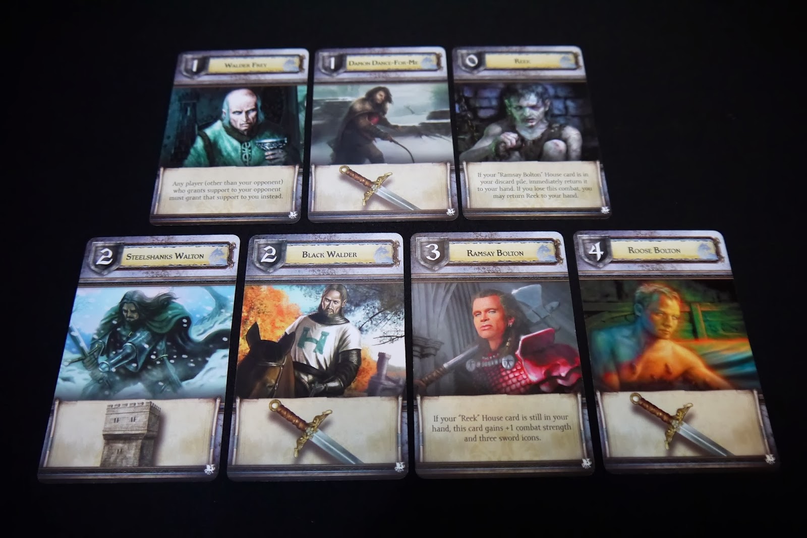 | 白狼變為波頓家族,手牌的循環變成:拉姆斯波頓 + 臭佬的組合,在某種程度上, 家族卡戰力平均非常高;不過也犧牲了原本有許多塔(防止兵力損失)的優勢。 |