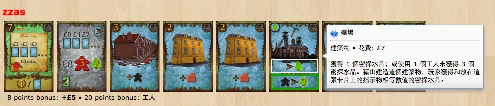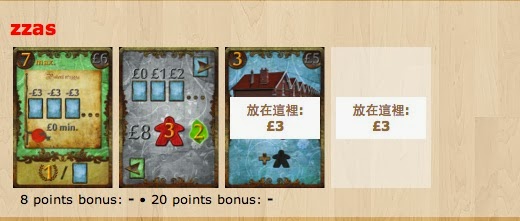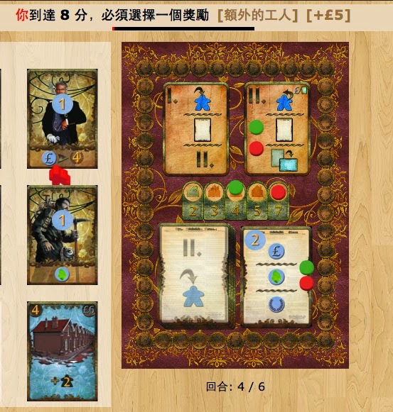 | 當玩家到達8分時,選擇一項獎勵,BGA很貼心的會自動跑出來。 20分時,另外一項獎勵會自動獲得。 |