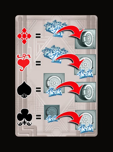 ○ 3 個小型鑽石水晶:把這些鑽石放到你的展示間。展示間是你面前,金庫旁的區域。你展示間裡的鑽石每個玩家都看的見。