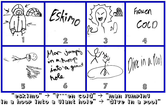 愛斯基摩人最後答案變成泳池裡游泳,這歪樓歪太大啦!估計是從 3 樓 (上圖 3) 開始歪起的......。